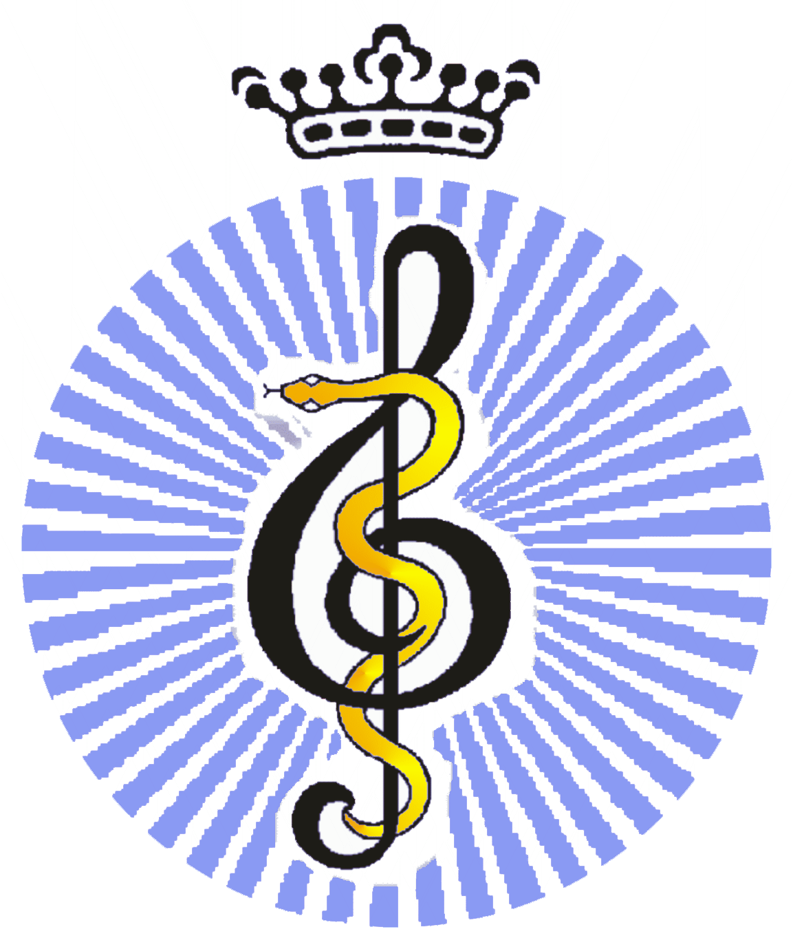 Musik (Violinschlüssel) und Heilkunst (Schlange) sind zu einer Ganzheit verschmolzen. Sie durchdringen einander, und die Schlange wird, wie beim Ursymbol des Asklepios, aufgerichtet. Die Wirkung und Harmonie dieser Verschmelzung strahlt allumseitig in den Erdkreis (Strahlenkranz).